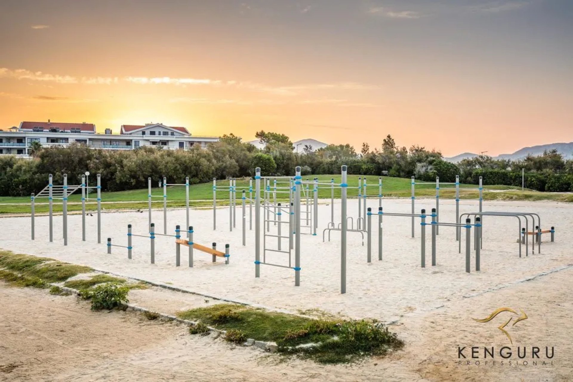 Au niveau du rond point avec la Statue David. Passez l'entrée principale sur la plage et dirigez vous à gauche. Vous verrez le Street Workout à 100 m directement à partir de l'entrée.